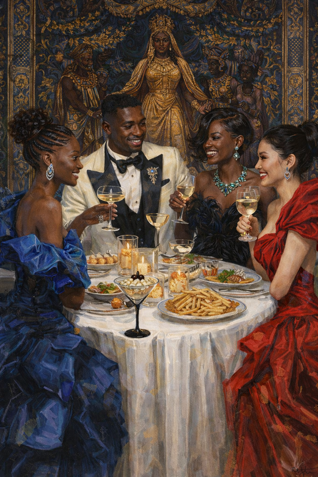 I’m talking about friends who decide: we are going to get dressed to the nines. We are digging into the back of our closets. That midi gown that’s been waiting. That three-piece suit tailored to the heavens. The heel you bought for “something special.”